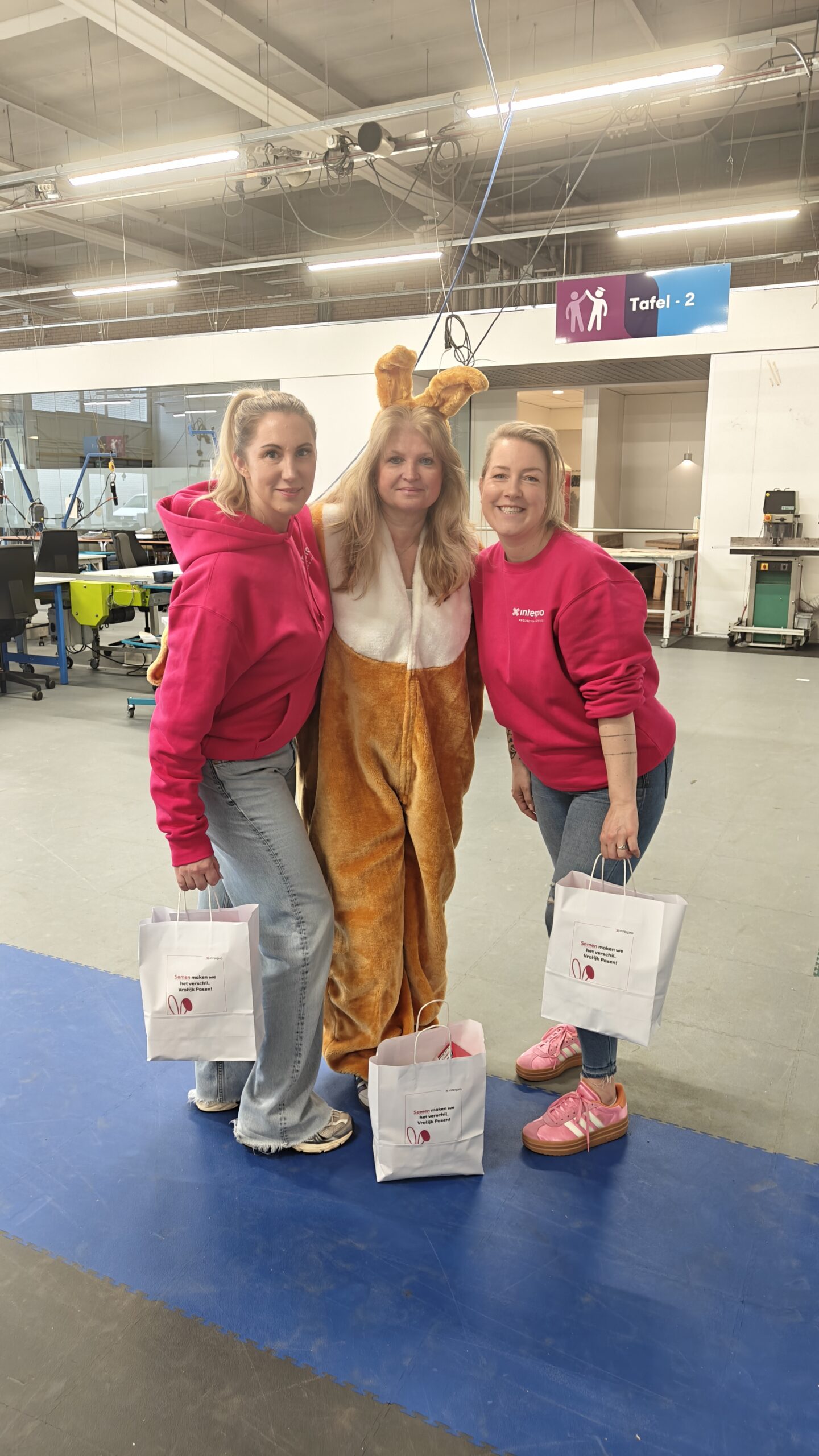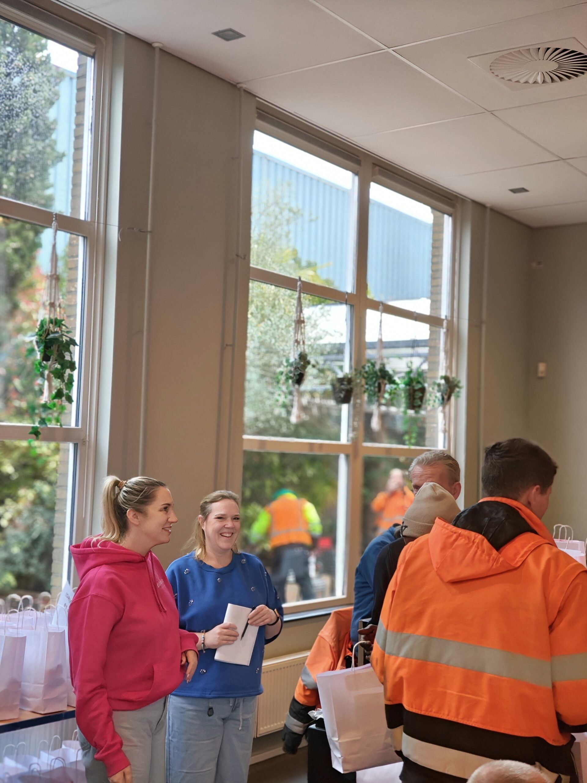Op 2 april volgde eigenlijk, voor veel van de betrokkenen, het hoogtepunt van de actie: collega’s Lianne, Sabrina en Jolanda gingen langs bij Patijnenburg om de vakmedewerkers – mensen met een afstand tot de arbeidsmarkt – persoonlijk te verrassen met een zorgvuldig samengesteld Paaspakket.