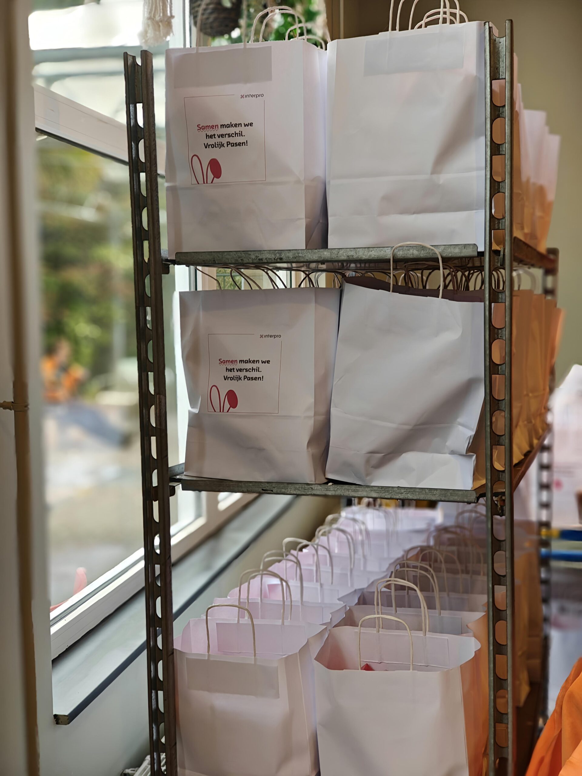 Door samen te werken met partijen (en accountmanagers/adviseurs zoals Marjolein Ferweda) die willen meedenken, zoals Patijnenburg, ontstaat er ruimte om er echt iets van te maken. Deze Paasactie is daar een goed voorbeeld van. Niet alleen hebben we gezinnen in het Westland kunnen ondersteunen, maar tegelijkertijd hebben de vakmedewerkers van Patijnenburg meegewerkt aan het samenstellen en verpakken van de tasjes én de pakketten en hebben we hen ook nog eens zelf in het zonnetje kunnen zetten.