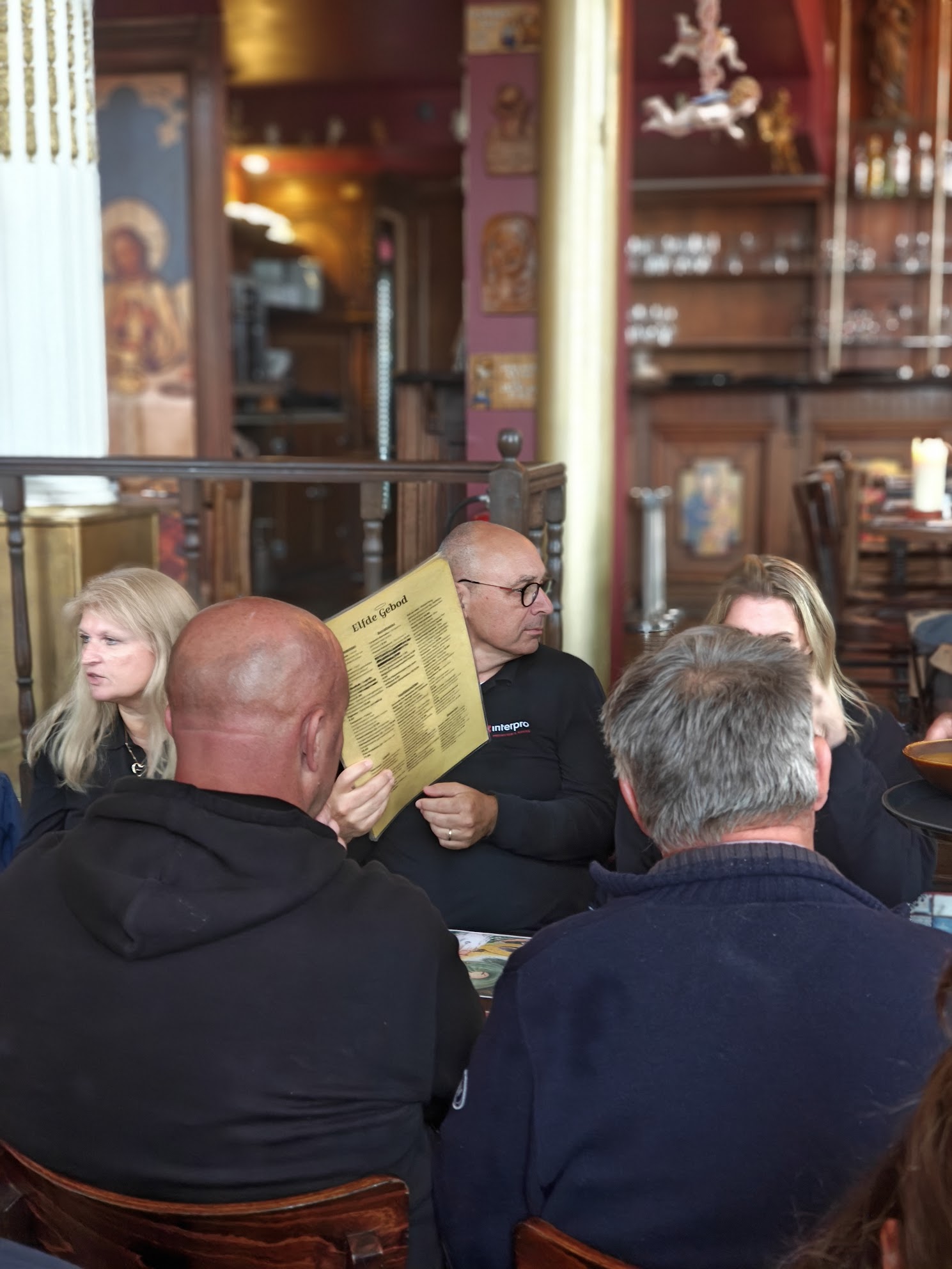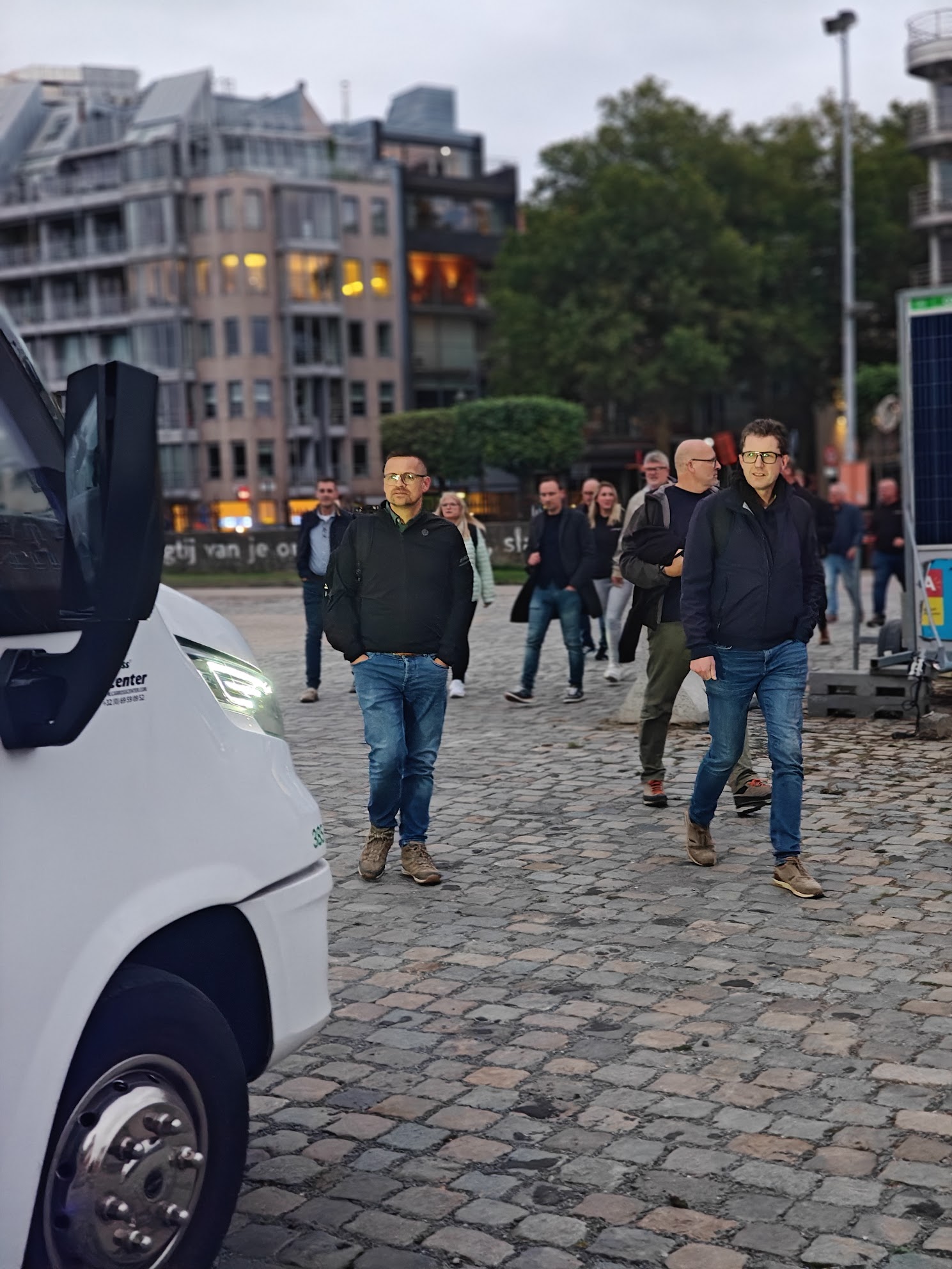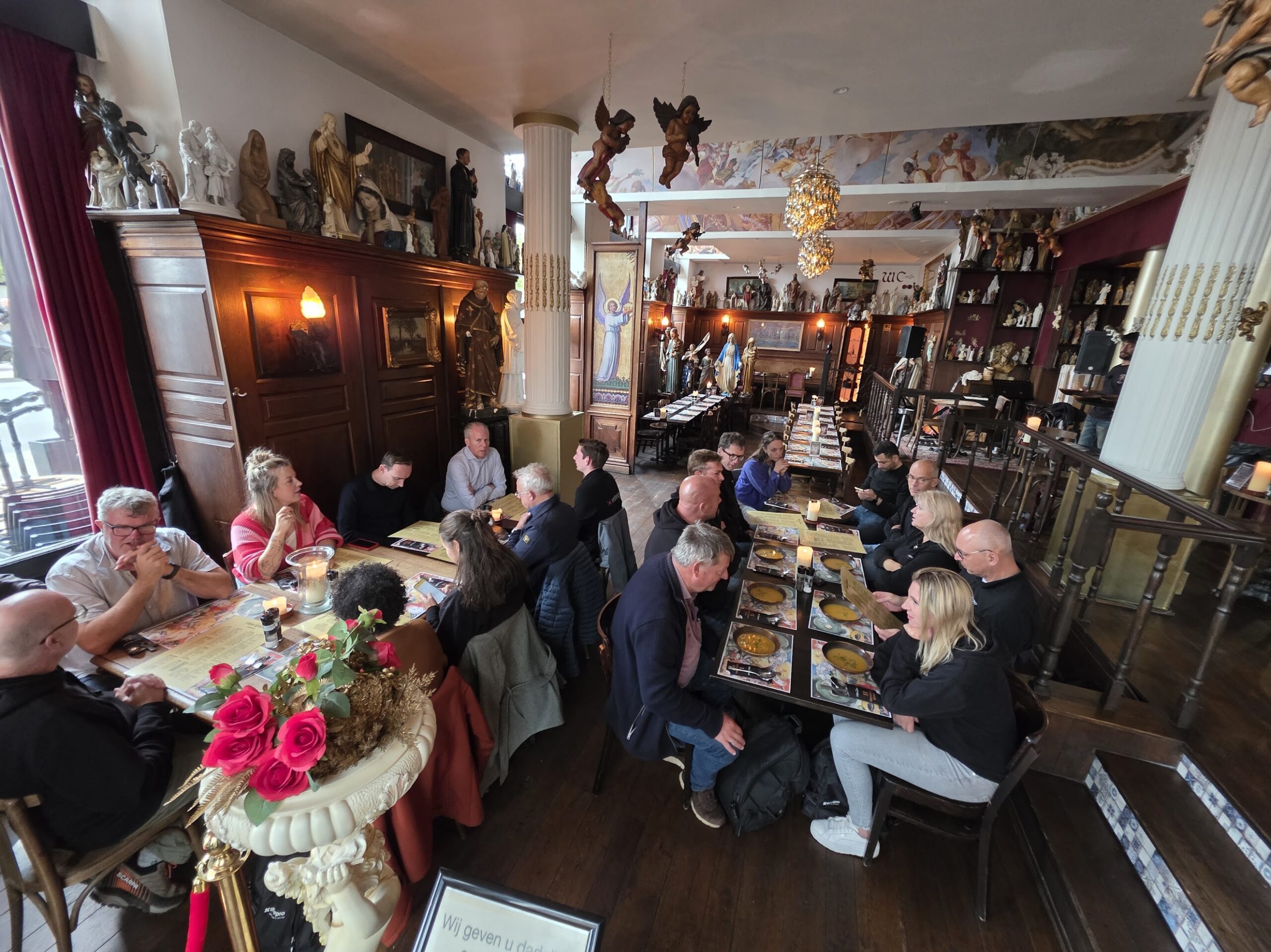 Na de soepele busrit kwamen we iets te vroeg in Antwerpen aan, maar gelukkig bleek collega Marcel onze eigen stadsambassadeur. Onder zijn leiding maakten we een korte wandeling door het centrum, langs herkenbare plekken – waaronder het restaurant waar we ooit ons vijfjarig jubileum vierden. Mooi om te zien dat er nog altijd collega’s bij zijn die toen óók al van de partij waren.