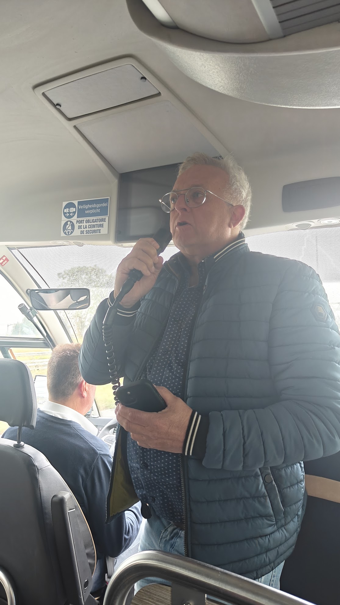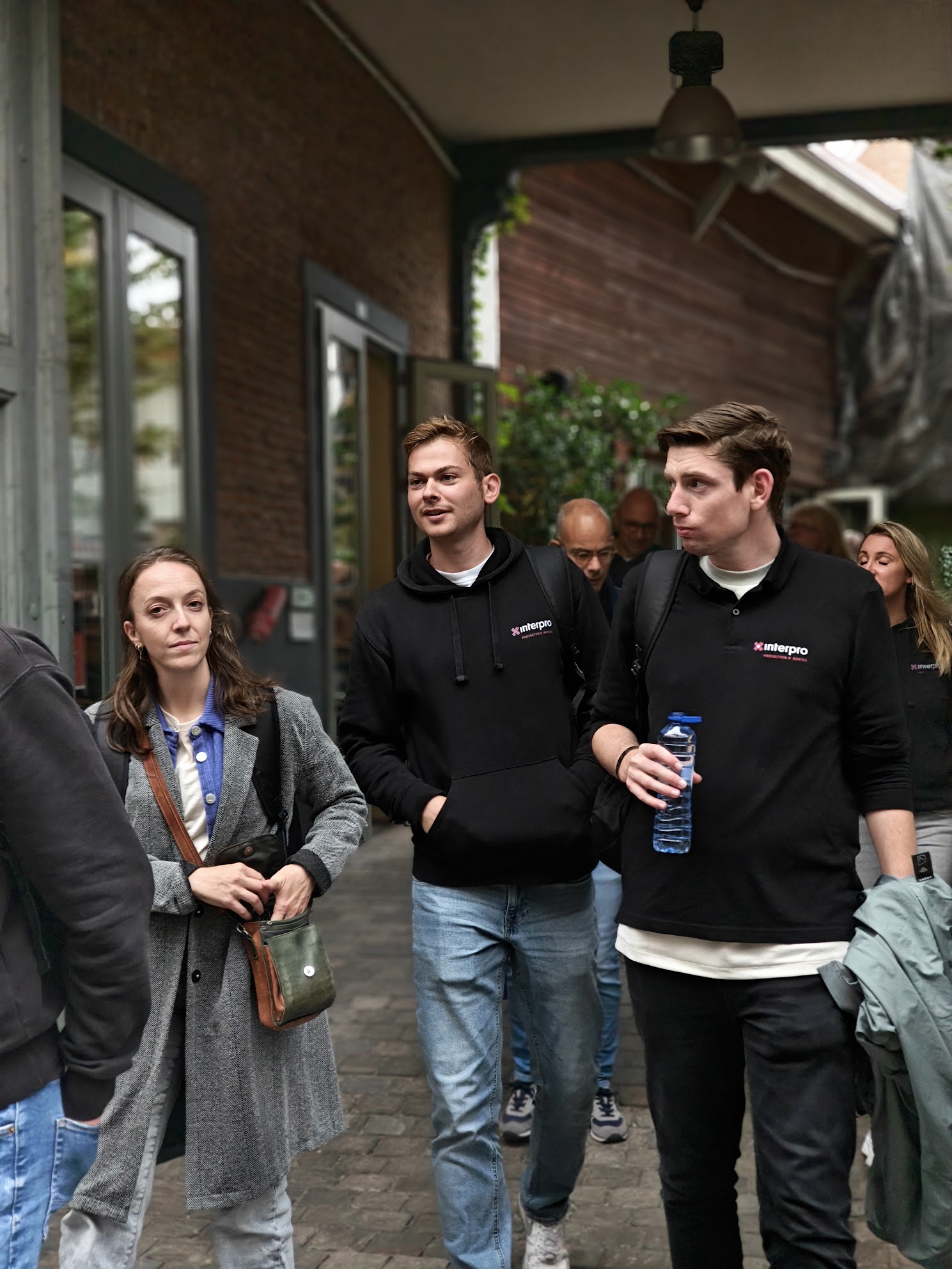 De dag begon op kantoor, waar iedereen een nieuwe Interpro-laptoptas ontving – gevuld met een heerlijk lunchpakketje van Lunchbunch. Toen met z’n allen de bus in; het ultieme ‘schoolreisje-gevoel’! Uiteraard nam Eric in de bus nog even het woord, het was namelijk zijn laatste personeelsuitje “in functie” voor zijn pensioen – een mooi en symbolisch moment dat met een warm applaus werd ontvangen.